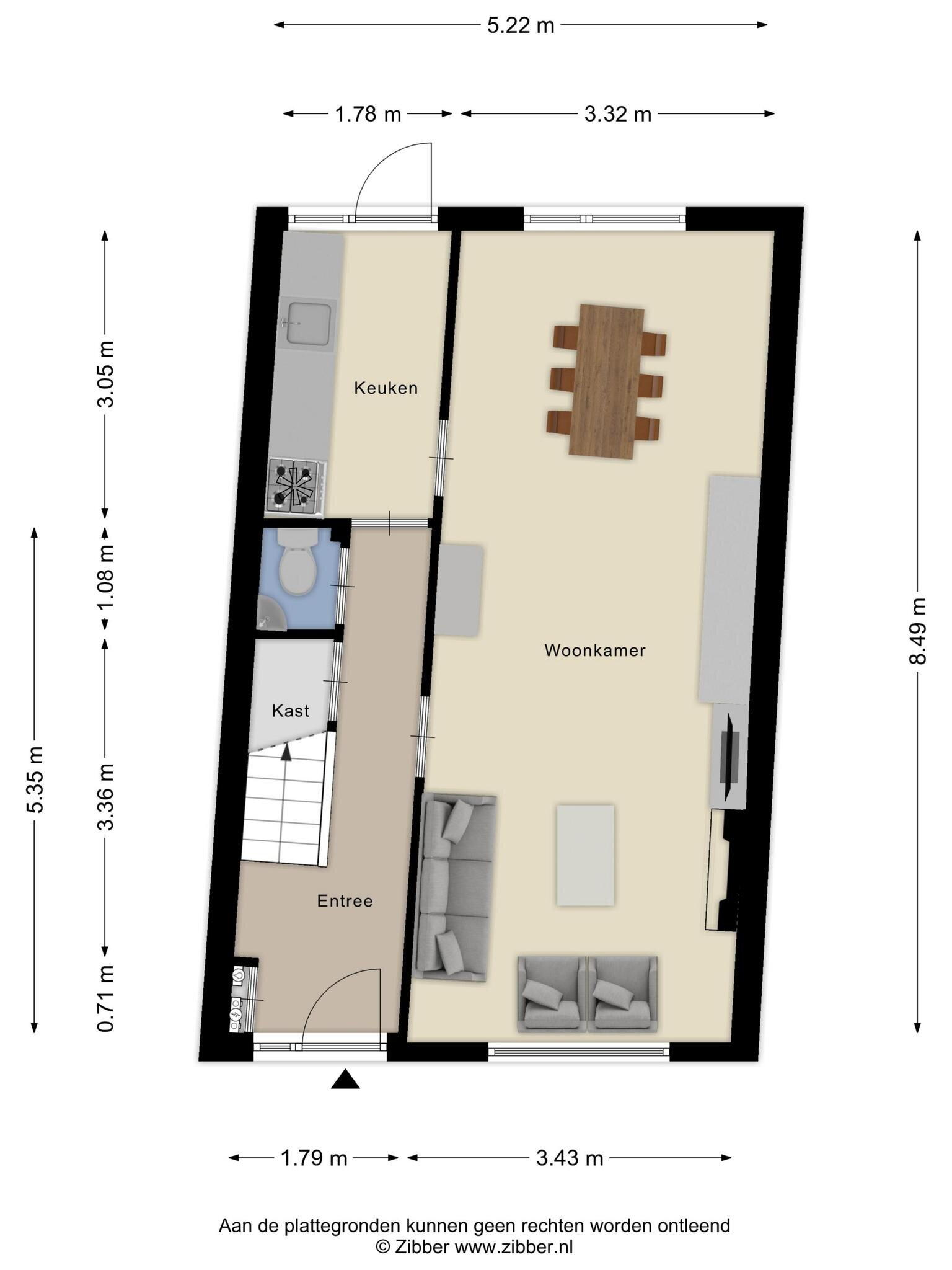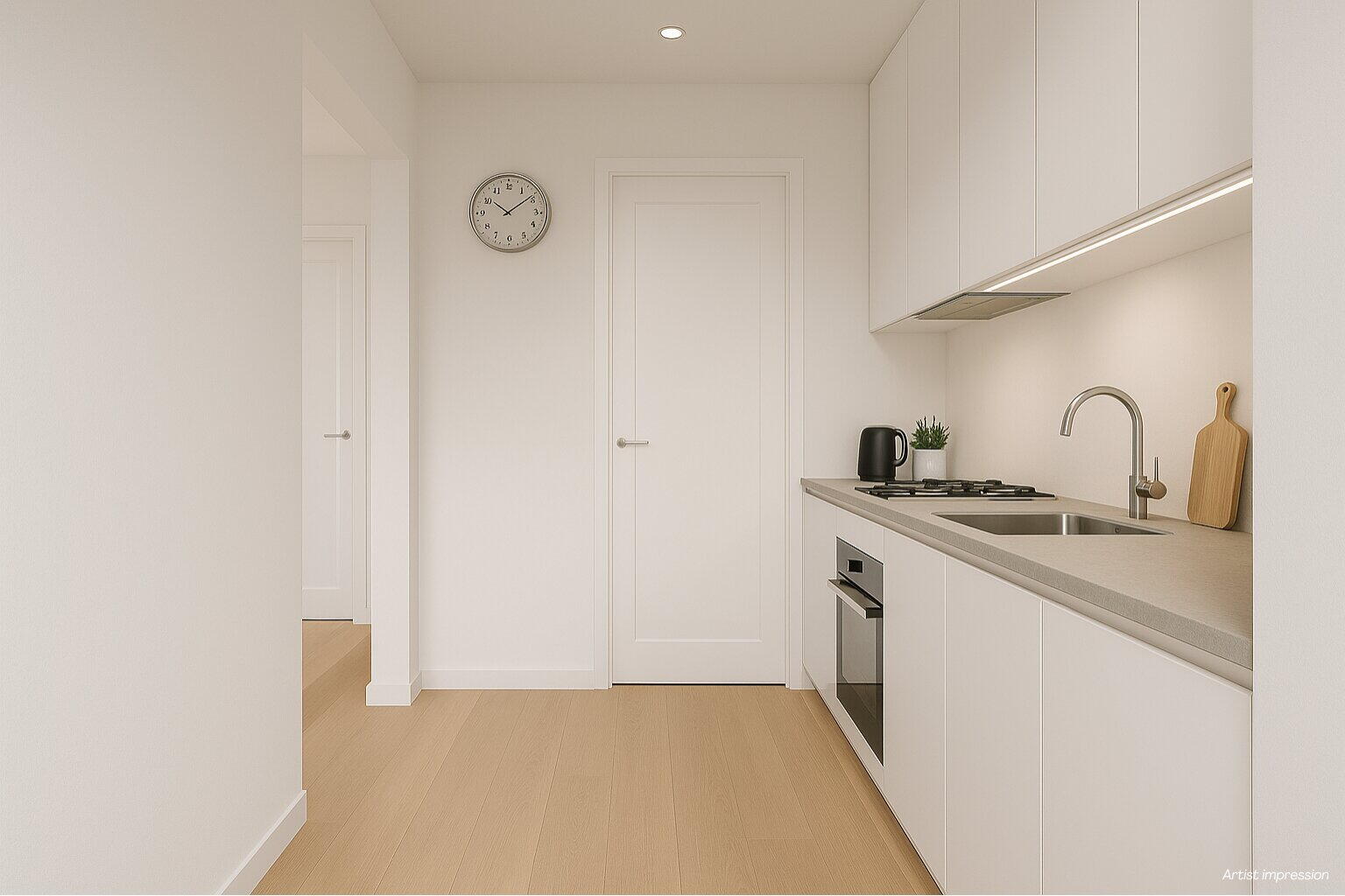 Bij binnenkomst stap je in een praktische hal die direct toegang geeft tot een handige bergkast, het toilet, de woonkamer en de keuken. Hier begint jouw thuisgevoel!