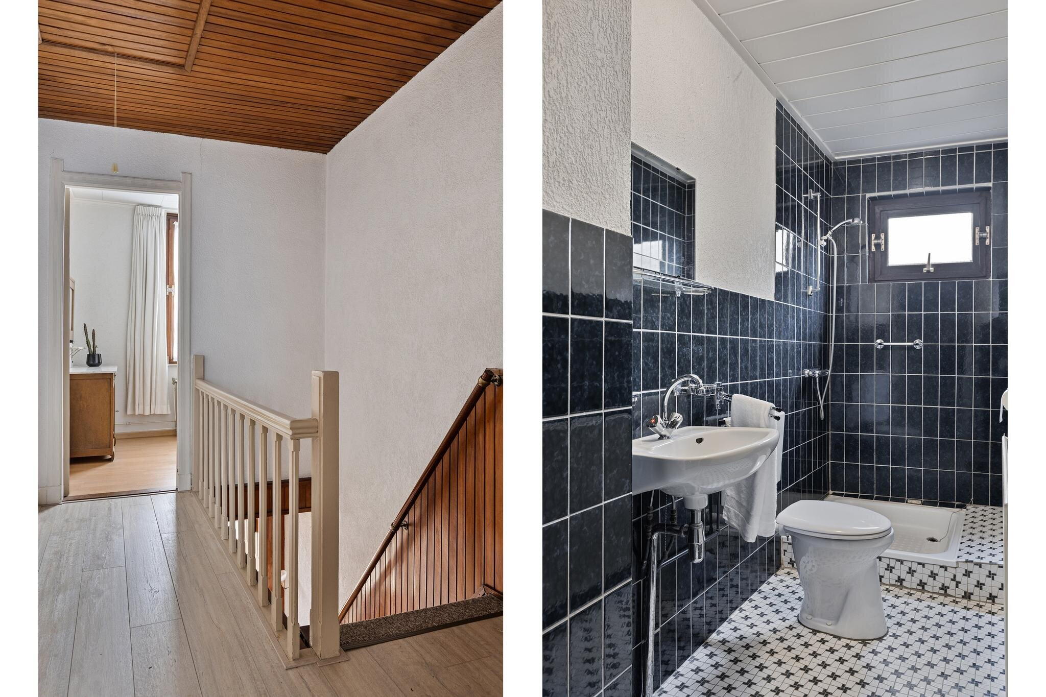 Op de eerste verdieping vind je maar liefst vier slaapkamers. Twee ruime kamers, perfect als master bedroom en een grote tienerkamer. De overige twee kamers zijn ideaal als werkruimte, hobbykamer of knusse kinderkamer. Flexibiliteit genoeg! De badkamer is praktisch ingericht met een open douche, toilet en wastafel. Alles wat je nodig hebt om fris de dag te beginnen! Via een vliering op de overloop is de zolder bereikbaar, een handige extra ruimte voor opslag.