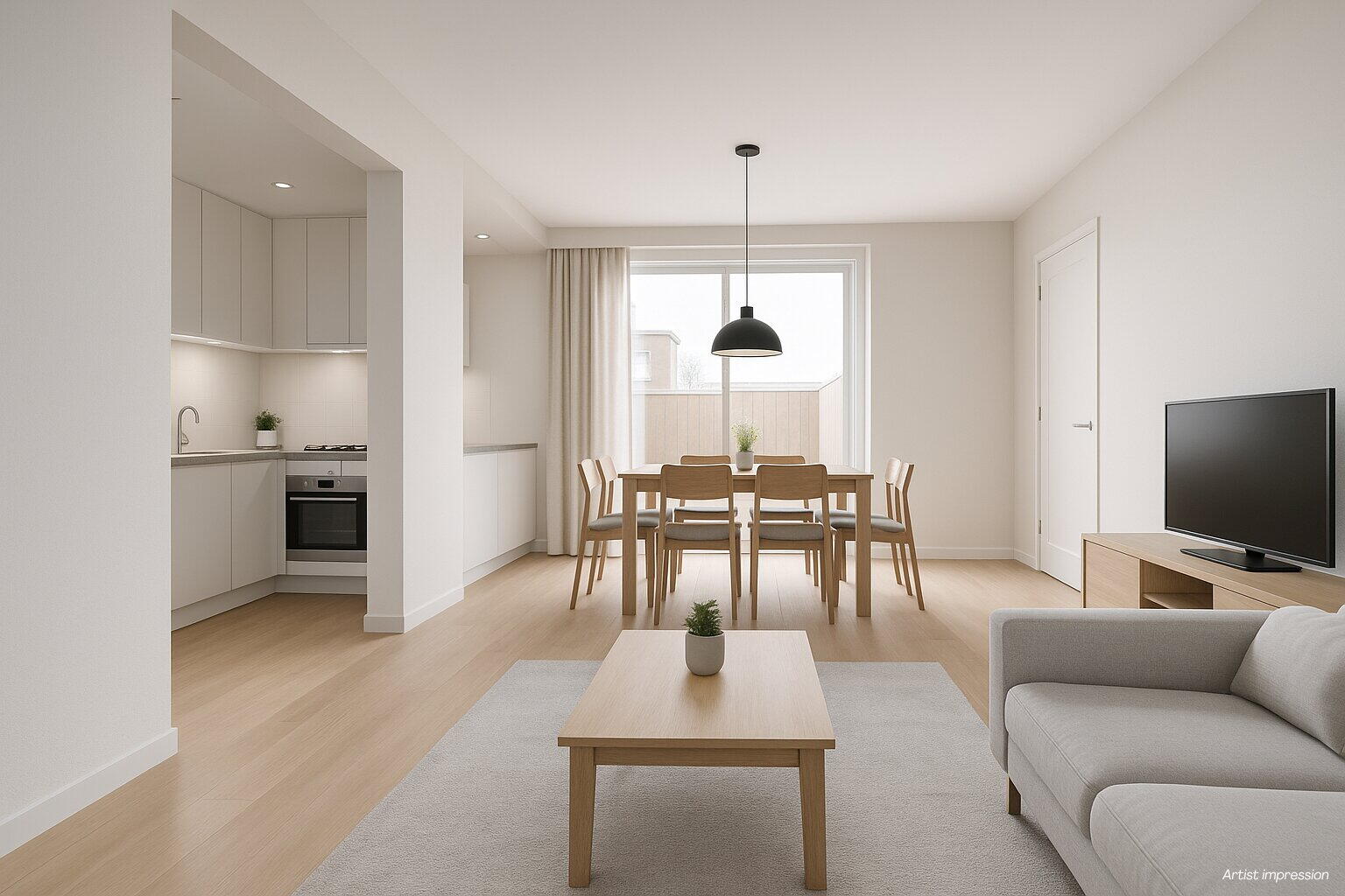 De lichte woon- en eetkamer vormt een heerlijke plek om tot rust te komen. Dankzij de grote ramen aan beide zijden profiteer je de hele dag door van een mooie natuurlijke lichtinval. De ruimte is flexibel in te richten naar jouw wensen, van een knusse zithoek tot een royale eettafel voor gezellige diners met vrienden, de mogelijkheden zijn eindeloos. De keuken is momenteel afgesloten van de woonkamer en biedt direct toegang tot de achtertuin, ideaal om tijdens het koken gemakkelijk naar buiten te stappen. In de praktische opstelling bereid je moeiteloos de lekkerste gerechten. Voor wie meer ruimte en een open gevoel wil creëren, is het mogelijk om de keuken half open te maken. Zo ontstaat er een natuurlijke verbinding tussen wonen en koken. Deze mogelijke aanpassing is ook te zien op de visuals.